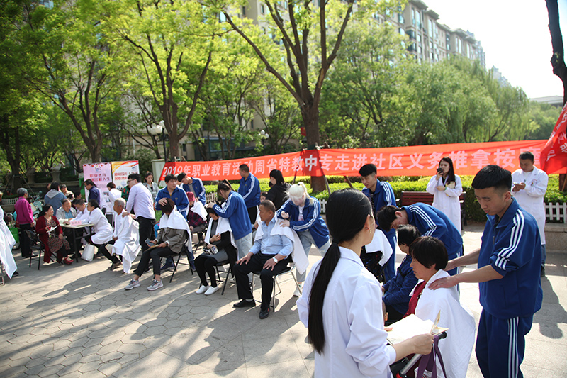 迎祖國七十華誕,展職教時代風采。在2019年全國職業(yè)教育活動周啟動之際,山西省特殊教育中等專業(yè)學(xué)校開展了進社區(qū)義務(wù)推拿按摩活動。