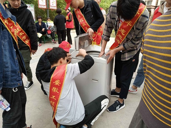 2019年5月9日上午8時(shí),根據(jù)學(xué)校2019年職業(yè)教育活動(dòng)周活動(dòng)統(tǒng)一部署,安徽工程技術(shù)學(xué)校團(tuán)委組織動(dòng)員30余名師生青年志愿者,由校團(tuán)委副書記張懿帶隊(duì),走進(jìn)安徽省宿州市埇橋區(qū)三八街道光彩社區(qū)所轄汴河路小區(qū),開展了一次“職業(yè)教育進(jìn)社區(qū),職業(yè)技能惠民生”的主題團(tuán)日活動(dòng)。