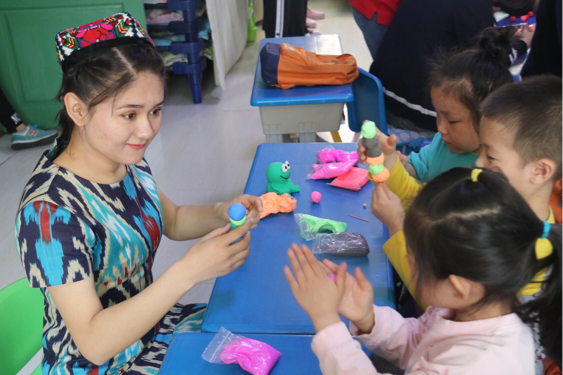 教育系學(xué)前教育專業(yè)師生們來到平房區(qū)哈爾濱世紀(jì)幼兒園,與小朋友們近距離溝通互動(dòng),一起做游戲,做手指操,捏黏土,捏出了各種小動(dòng)物和水果的形狀,體驗(yàn)做幼師的快樂。學(xué)生們充分利用這次活動(dòng)機(jī)會(huì),將課堂與實(shí)際相結(jié)合,檢驗(yàn)知識(shí)技能學(xué)習(xí)情況,深入體驗(yàn)未來工作崗位,成就自己的幼師夢(mèng)想。在游戲的組織、節(jié)目的編排、與幼兒和與家長溝通交流等環(huán)節(jié)中,受到了幼兒園老師的一致好評(píng)。
