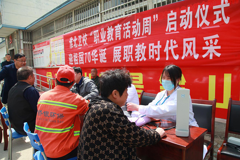 2019年職業(yè)教育活動(dòng)周的主題為“迎祖國(guó)七十華誕,展職教時(shí)代風(fēng)采”?;顒?dòng)期間,淮北衛(wèi)校將按照《教育部等十部委關(guān)于做好2019年職業(yè)教育活動(dòng)周相關(guān)工作的通知》精神和省、市相關(guān)部門(mén)要求,發(fā)揮衛(wèi)生職業(yè)教育辦學(xué)優(yōu)勢(shì)和專(zhuān)業(yè)特長(zhǎng),開(kāi)展職教宣傳、社區(qū)義診、健康咨詢(xún)、職業(yè)禮儀、科普宣傳教育等便民利民服務(wù)活動(dòng),展示職教成果。實(shí)施職業(yè)教育體驗(yàn)周,邀請(qǐng)學(xué)生、家長(zhǎng)走進(jìn)校園,參觀體驗(yàn)衛(wèi)生職教文化和護(hù)理、康復(fù)專(zhuān)業(yè)實(shí)驗(yàn)實(shí)訓(xùn)室,現(xiàn)場(chǎng)觀摩護(hù)理禮儀展示暨燃燭授帽儀式,了解職業(yè)教育政策,擴(kuò)大衛(wèi)生職業(yè)教育的影響力,引導(dǎo)初中生正確認(rèn)識(shí)職業(yè)教育,選擇適合自身發(fā)展的職業(yè)教育。組織開(kāi)展產(chǎn)教融合、校企合作主題展覽、研討及典型案例,組織媒體和記者走進(jìn)校園,多層次、多角度宣傳衛(wèi)生職業(yè)教育,激發(fā)社會(huì)尊重勞動(dòng),崇尚技術(shù)技能,廣泛傳播衛(wèi)生職業(yè)教育正能量、好聲音、新形象。