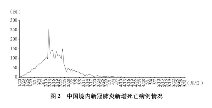 截至2020年5月31日24時,31個省、自治區(qū)、直轄市和新疆生產(chǎn)建設(shè)兵團累計報告確診病例83017例,累計治愈出院病例78307例,累計死亡病例4634例,治愈率94.3%,病亡率5.6%(見圖1、2、3、4)?;仡櫱耙浑A段中國抗疫歷程,大體分為五個階段。