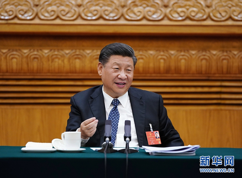 5月24日,中共中央總書記、國家主席、中央軍委主席習近平參加十三屆全國人大三次會議湖北代表團的審議。(新華社記者 李學仁/攝)