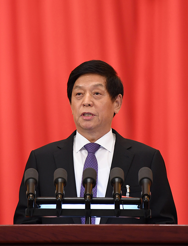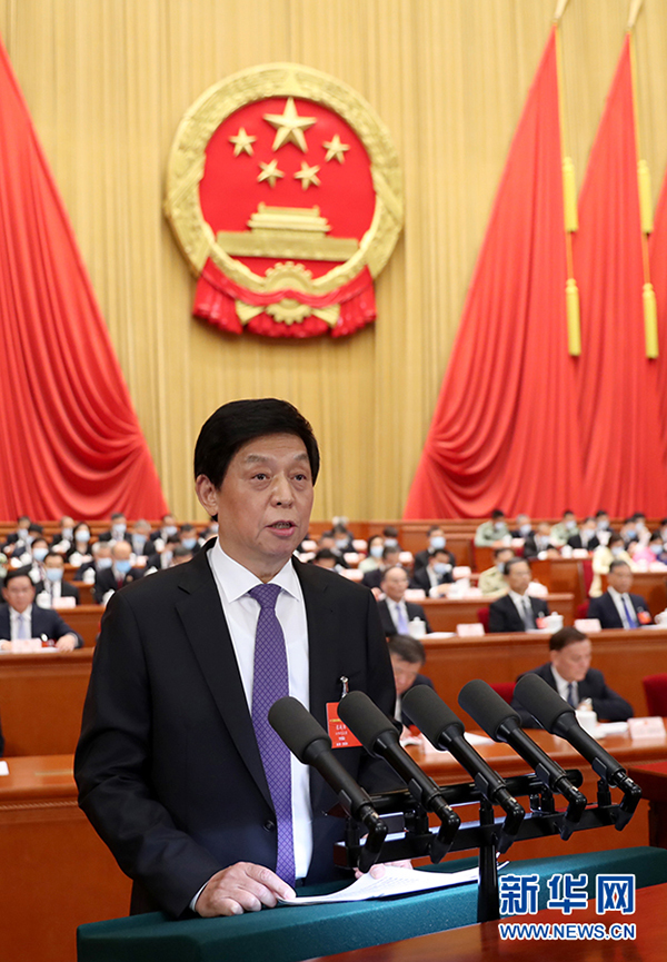 5月25日,十三屆全國(guó)人大三次會(huì)議在北京人民大會(huì)堂舉行第二次全體會(huì)議。全國(guó)人大常委會(huì)委員長(zhǎng)栗戰(zhàn)書(shū)作全國(guó)人民代表大會(huì)常務(wù)委員會(huì)工作報(bào)告。(新華社記者 翟健嵐/攝)