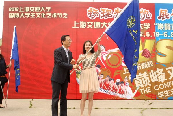 5月15日下午,上海交大在閔行校區(qū)菁菁廣場(chǎng)召開(kāi)交大、復(fù)旦學(xué)生文體競(jìng)賽動(dòng)員大會(huì)。校長(zhǎng)張杰、校黨委副書記徐飛到場(chǎng)為6支參賽隊(duì)伍授旗。