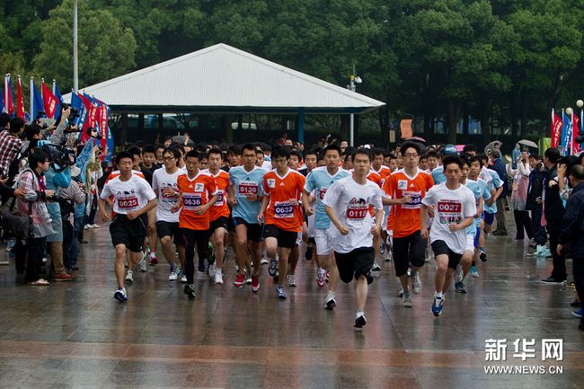 5月20日,在上海市青少年校外活動營地東方綠舟,復旦大學和上海交通大學的學生們在進行小馬拉松比賽。(新華社記者 金立旺 攝)
