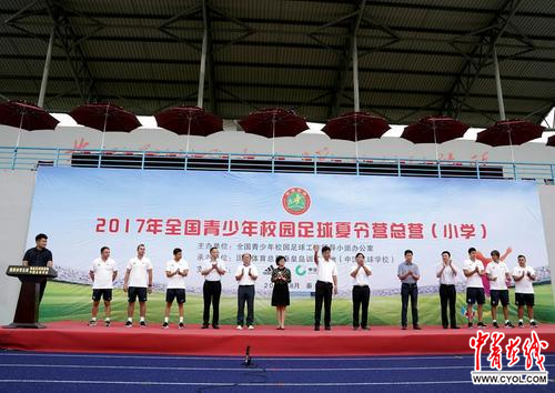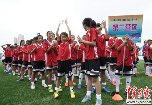 8月14日,國家體育總局秦皇島訓(xùn)練基地,2017年全國青少年校園足球夏令營小學(xué)組總營舉行開營儀式。中國青年報·中青在線記者 陳劍/攝