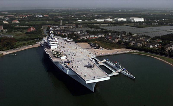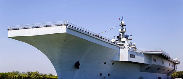“東方綠舟”航空母艦是美國海軍“尼米茲”級航空母艦的仿真水泥模型,與原型同樣大小,并擁有與原型航母完全相同的跑道和駕駛臺。