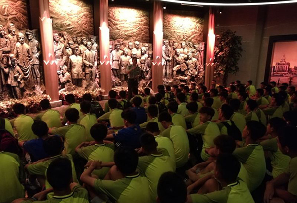 "東方綠舟毗鄰上海青浦淀山湖畔,占地5600畝,水域浩淼、植被蒼翠、水木清華、風(fēng)光旖旎。這里是中國國際青少年活動中心(上海)、全國青少年校外活動示范基地,還是國家國防教育示范基地。8月17日晚上6:30-8:00,全國青少年校園足球夏令營總營(初中)集體前往東方綠舟國防園,登上了令同學(xué)們心馳神往的航空母艦。"