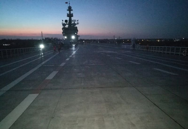 最后,同學(xué)們登上了航母甲板,此時(shí)天色已晚,但同學(xué)們的興奮之情依然很高,他們在寬闊的甲板上歡呼雀躍、奔跑和拍照留念。