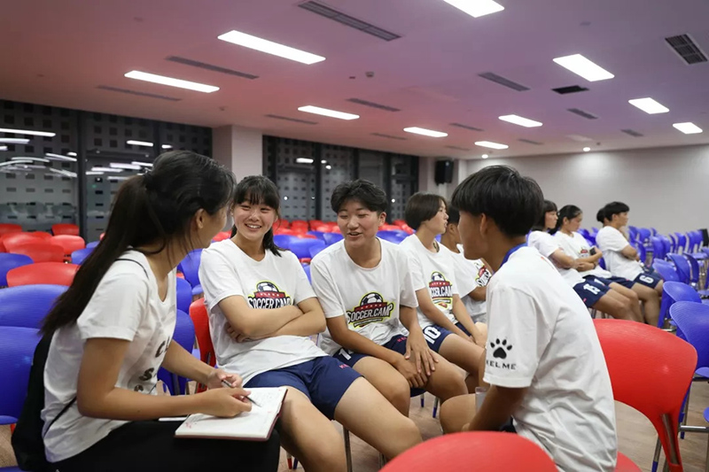 俗話說,文體不分家??偁I的球員們不僅是賽場上的佼佼者,也是唱歌跳舞的行家。2018年全國青少年校園足球夏令營總營(高中)?青島的賽程已過半,為了給即將到來的閉幕儀式畫上一個圓滿的句號,8月19日晚,中德生態(tài)園德國足球亞洲基地舉辦了閉幕晚會節(jié)目選拔活動,現(xiàn)場氣氛熱烈,悠揚的民歌、柔美的舞蹈、激昂的詩朗誦……精彩的表演引來學(xué)生們陣陣掌聲。