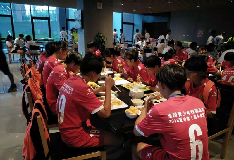 8月21日早上七點(diǎn)半,二營的女足球員們已經(jīng)在公寓樓下集合了,在隊(duì)長楊傳麗的帶領(lǐng)下,隊(duì)員們排隊(duì)去食堂吃早飯。距離閉營還有兩天,上午沒有訓(xùn)練安排,所以姑娘們可以稍微悠閑一點(diǎn)。