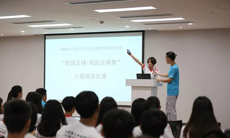 稍作休整后, 女足球員們集體參加了晚上以“校園足球?我的足球夢”為主題的演講比賽活動。二營推選了徐嘉璇、王品蓉參加了這次的演講比賽,徐嘉璇在演講時(shí)特意準(zhǔn)備了很多道具,和臺下的觀眾進(jìn)行互動,二營的伙伴們更是卯盡全力為隊(duì)友撐場吶喊。兩人也不負(fù)眾望,分別獲了演講比賽二、三等獎。