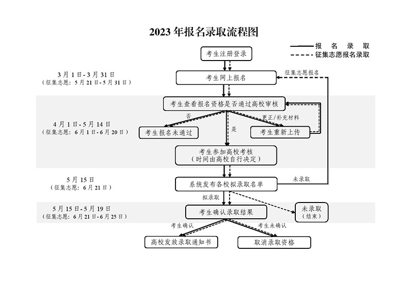 高校于6月1日至20日期間開展審核、考核及錄取工作,6月21日前將征集志愿擬錄取名單上傳至系統(tǒng),系統(tǒng)6月21日統(tǒng)一公布各校征集志愿擬錄取名單。