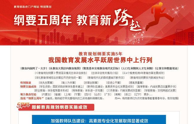 8.做好重要政策宣傳解讀。綜合運(yùn)用新聞發(fā)布會(huì)、答記者問(wèn)、專家文章、集體采訪、圖表數(shù)據(jù)等多種形式,對(duì)教育督導(dǎo)報(bào)告發(fā)布暫行辦法、國(guó)家義務(wù)教育質(zhì)量監(jiān)測(cè)方案、高校創(chuàng)新創(chuàng)業(yè)教育改革、鄉(xiāng)村教師支持計(jì)劃、青少年校園足球發(fā)展、加強(qiáng)和改進(jìn)學(xué)校美育工作、統(tǒng)籌推進(jìn)世界一流大學(xué)和一流學(xué)科建設(shè)總體方案、部分本科高校轉(zhuǎn)型發(fā)展、城鄉(xiāng)義務(wù)教育經(jīng)費(fèi)保障機(jī)制、加快發(fā)展民族教育等重大教育政策做好解讀和引導(dǎo)。圍繞重大政策發(fā)布答記者問(wèn)40余篇,專家文章近200篇。