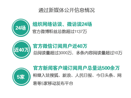 5.通過(guò)新媒體公開(kāi)信息情況。加強(qiáng)新媒體運(yùn)用和媒體聯(lián)動(dòng),探索官方微博、微信、新聞客戶端及門戶網(wǎng)站、教育報(bào)、教育臺(tái)聯(lián)動(dòng)的新聞發(fā)布模式,做好新聞發(fā)布、熱點(diǎn)回應(yīng)、信息服務(wù)等工作。組織網(wǎng)絡(luò)訪談、微訪談24場(chǎng);官方微博粉絲總數(shù)超過(guò)1137萬(wàn);官方微信訂閱用戶近40萬(wàn),總閱讀量超過(guò)3000萬(wàn),多條內(nèi)容閱讀量超過(guò)10萬(wàn);官方新聞客戶端已相繼入駐搜狐、新浪、人民日?qǐng)?bào)、今日頭條、網(wǎng)易等5家移動(dòng)發(fā)布平臺(tái),訂閱用戶總量達(dá)500余萬(wàn)。