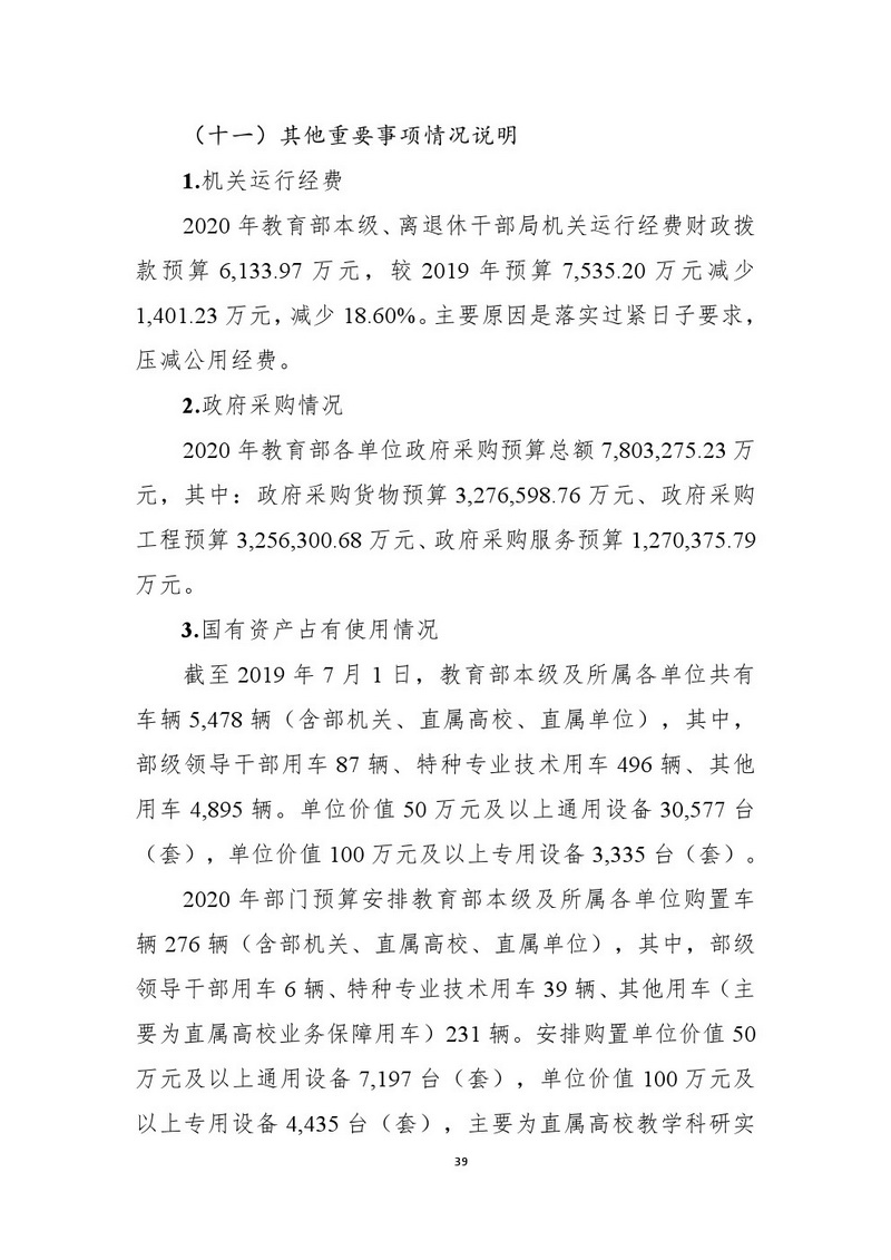 | 信息名稱: | 教育部2020年部門預(yù)算 | ||||