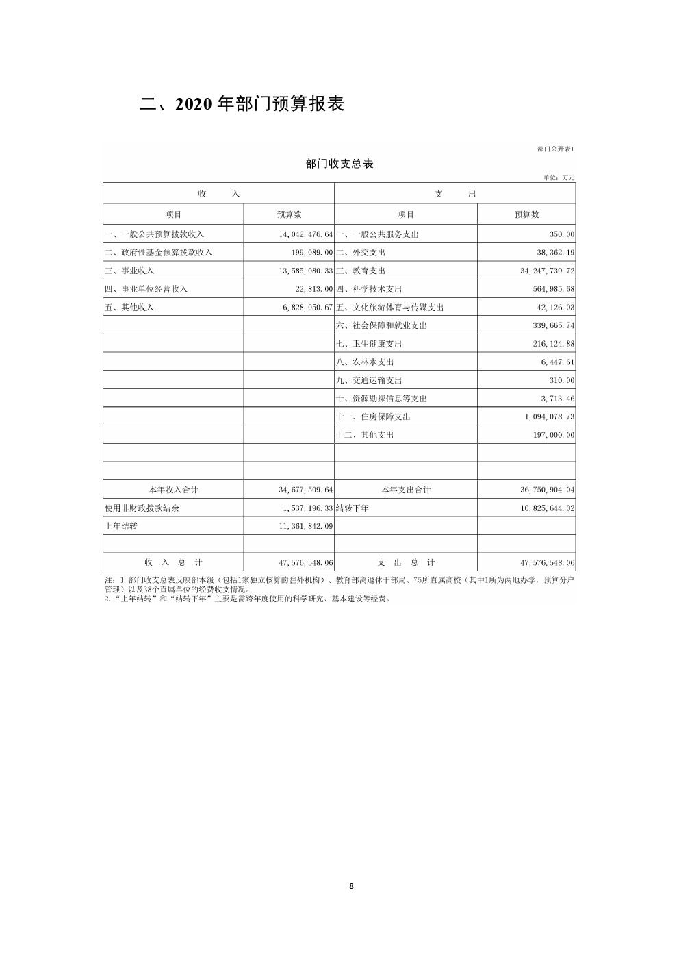 | 內(nèi)容概述: | 教育部2020年部門預(yù)算 | ||||