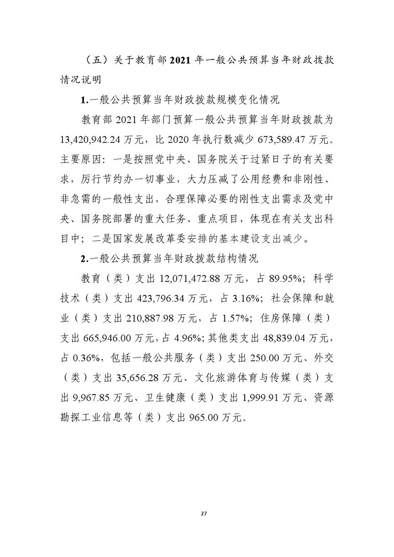 | 內(nèi)容概述: | 教育部2021年部門預(yù)算相關(guān)情況及說明。 | ||||