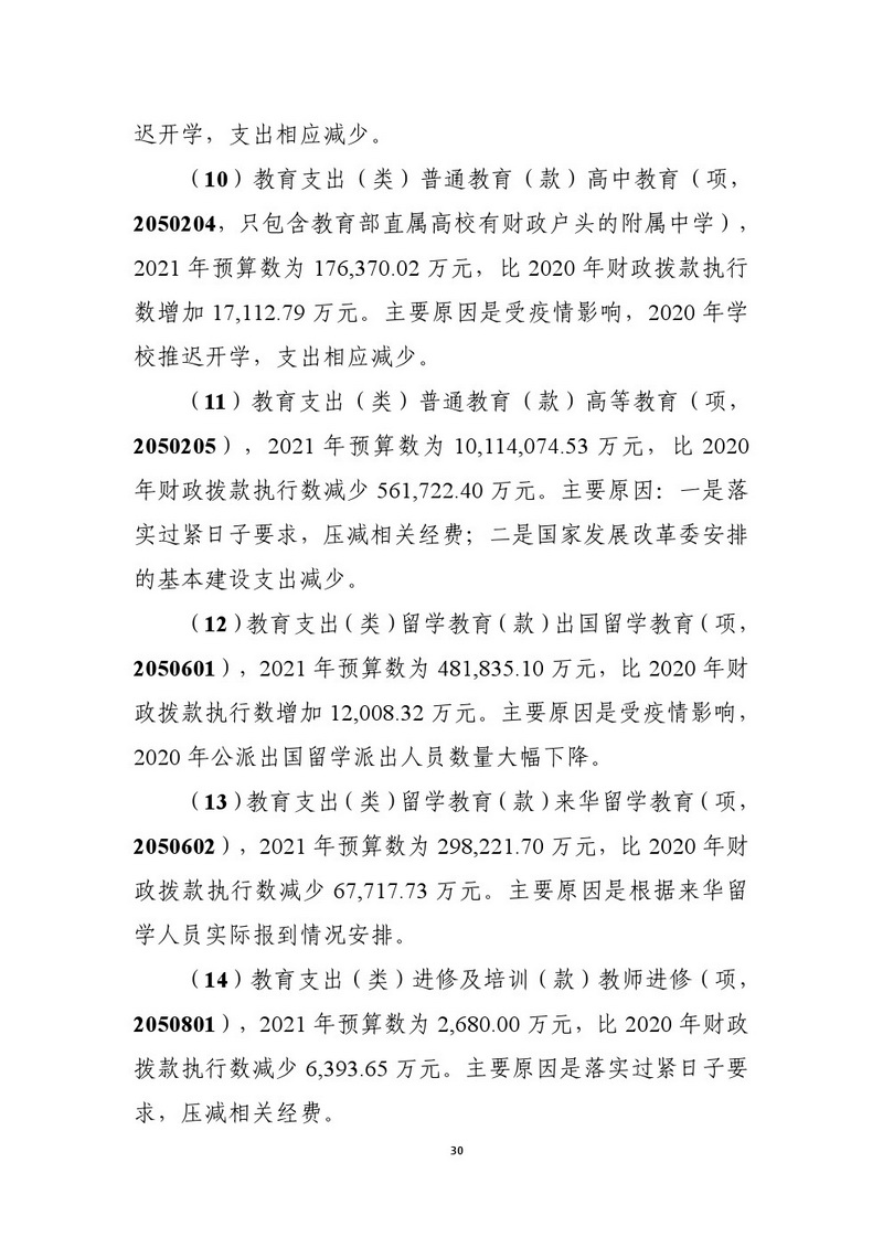 | 信息名稱: | 教育部2021年部門預(yù)算 | ||||