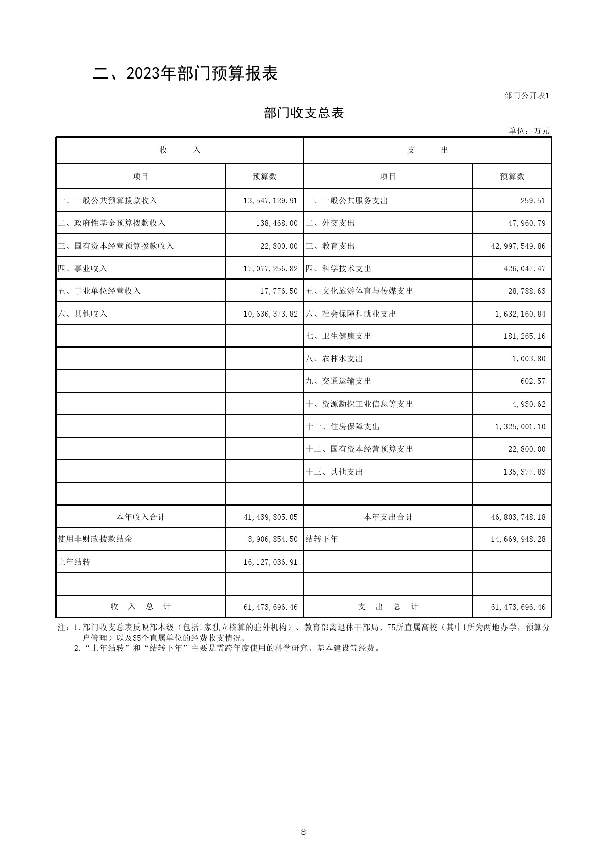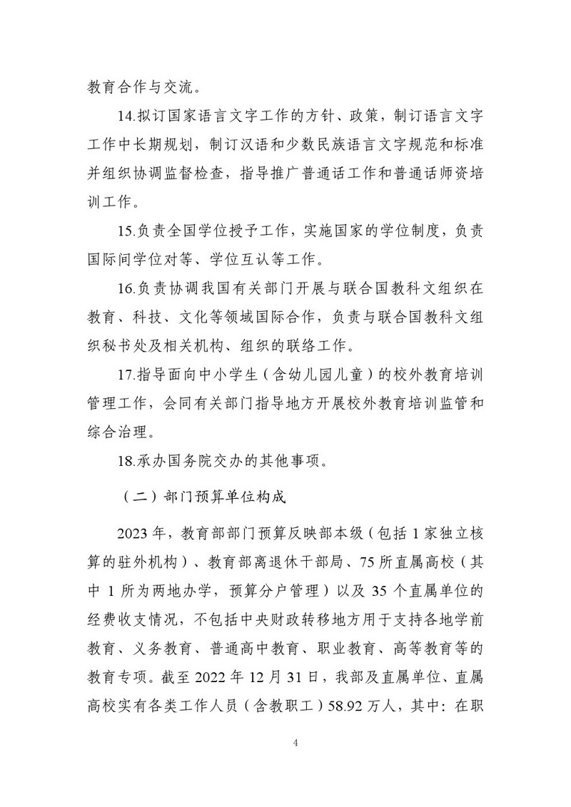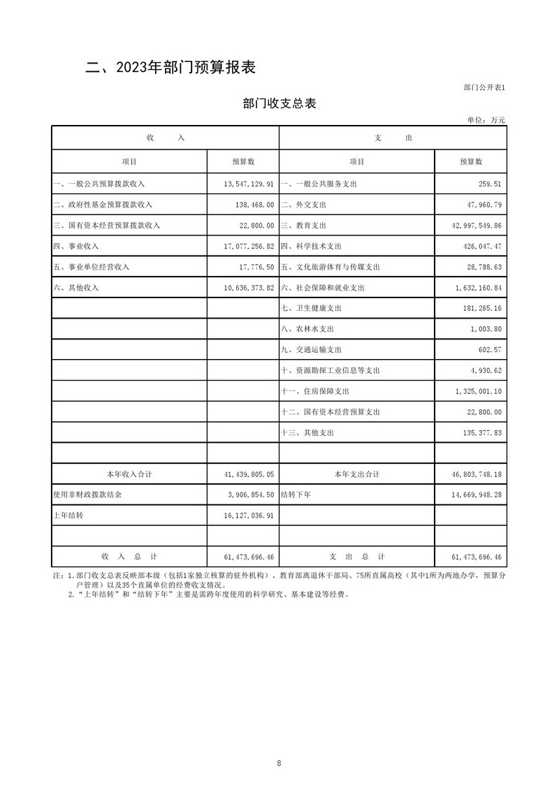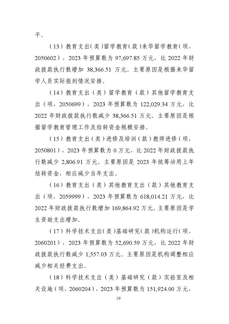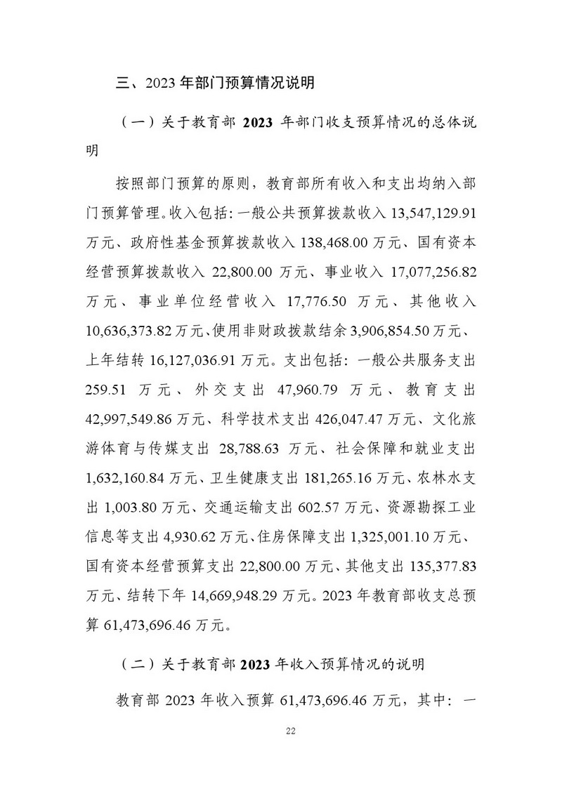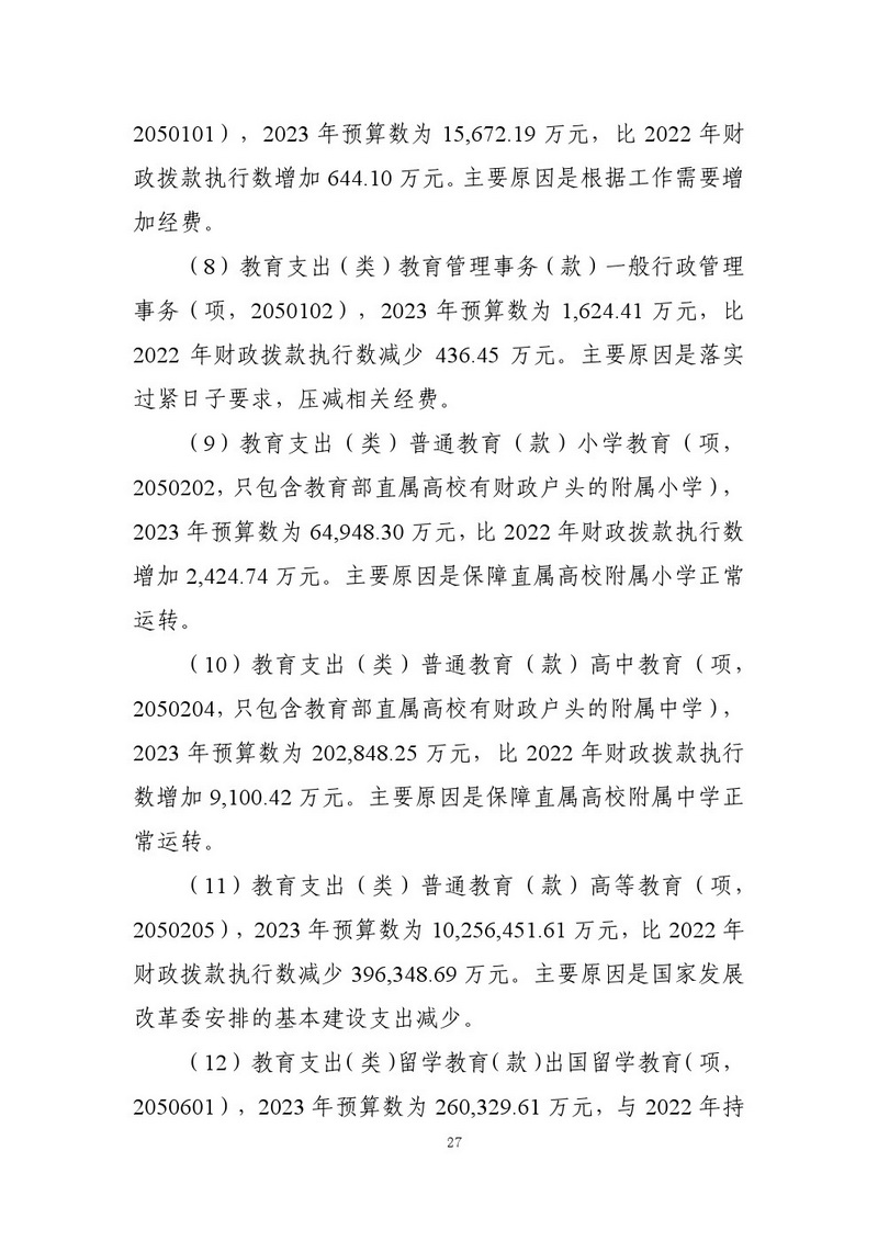 | 信息名稱: | 教育部2023年部門預(yù)算 | ||||
