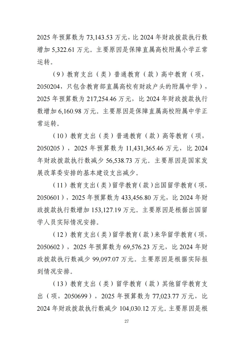| 信息名稱: | 教育部2025年部門預(yù)算 | ||||